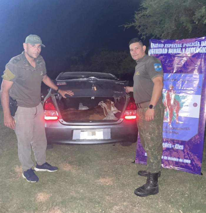 El domingo por la noche, agentes del PRIAR de Mercedes realizaron un cabo un operativo en la intersección de las rutas Nacional N° 123 y Provincial N° 133. Durante el procedimiento, interceptaron un automóvil Toyota Etios en cuya cajuela encontró un ternero encerrado.